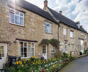 Local stone: Buildings are often constructed of grey limestone or local gritstone. These materials are durable but require lime-based pointing and careful cleaning to avoid weather staining.